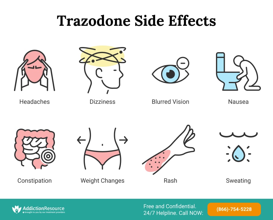The safety profile of trazodone is well established and documented, although it must be taken into account that most of the studies with this drug were focused on its use for the treatment of disorders depressive. In general, it is a safe drug, well tolerated and with a safety profile that differs from that of other hypnotic. The most common adverse reactions are mild: dizziness, drowsiness, fatigue, headache, dry mouth,nervousness, diarrhea and syncope, among others. Driving should be avoided during treatment.
