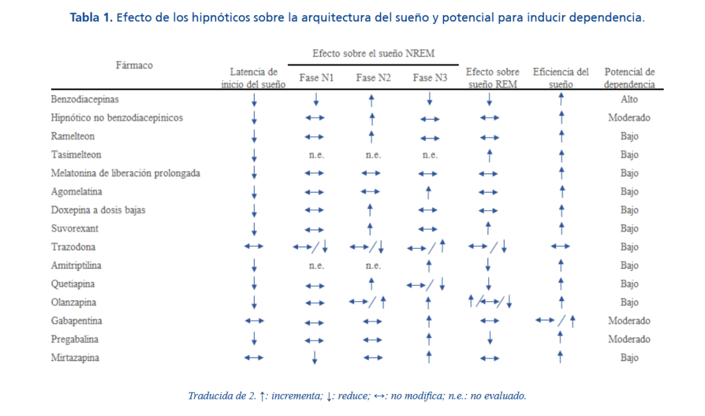 Most of the guidelines consider that the evidence is insufficient to recommend it in the general population or in the elderly with chronic insomnia. The use of antipsychotics or sedating antidepressants (such as trazodone) only it is justified when there is a concomitant pathology. It could be a therapeutic option in patients who do not.
